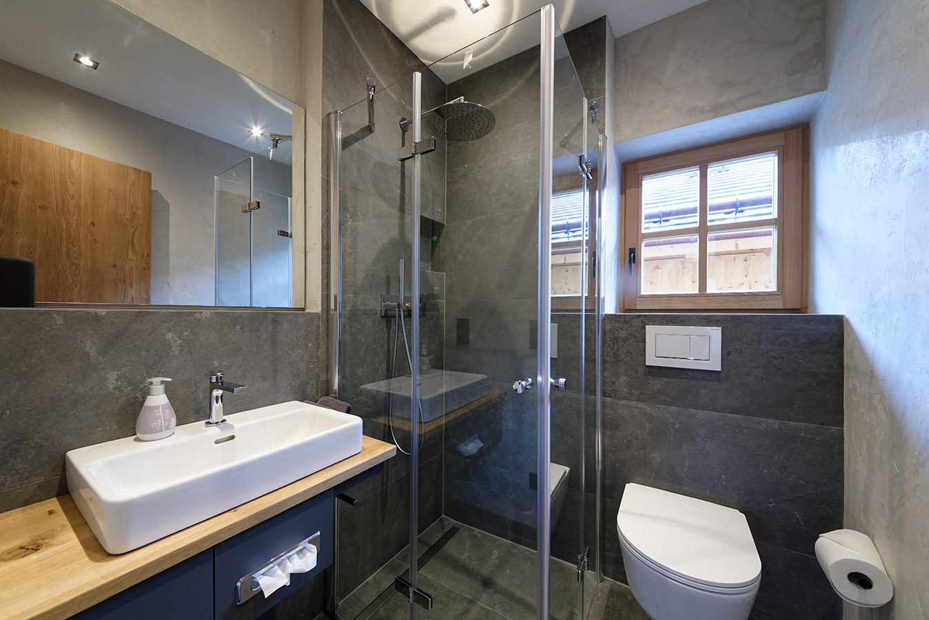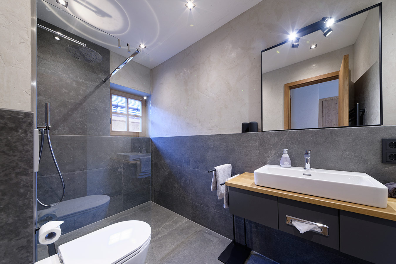 • Bad mit ebenerdige Rainbowshower-Dusche/WC, Fön, Kosmetikspiegel